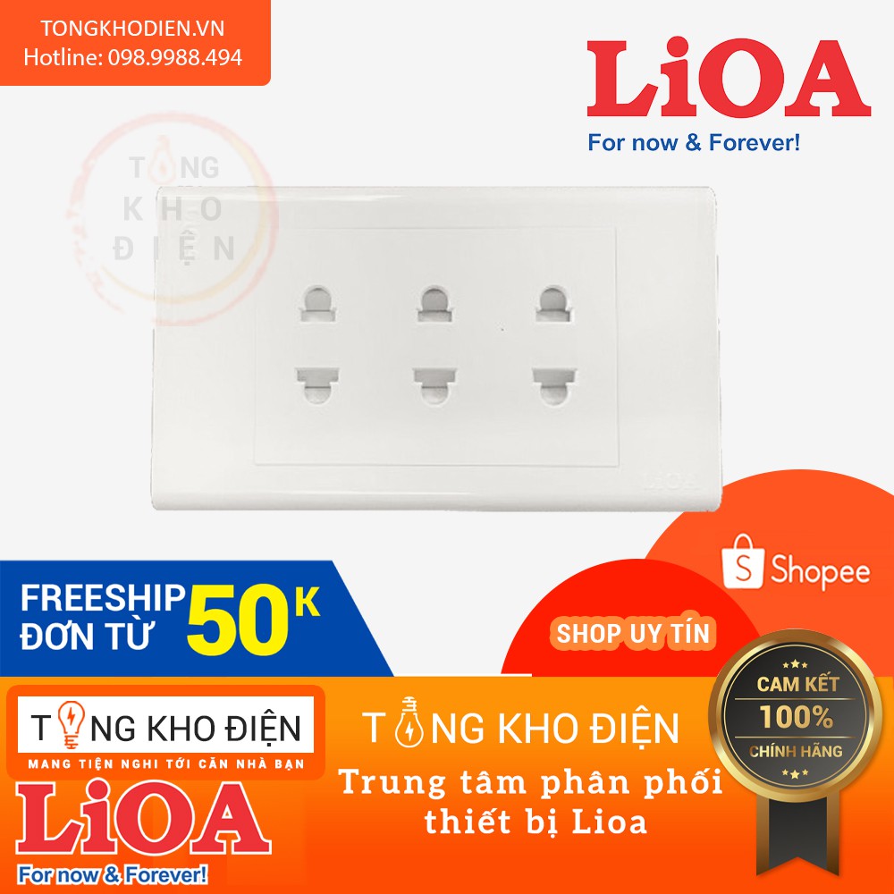 [CHÍNH HÃNG] Mặt 3 ổ cắm LiOA (âm tường + lắp nổi)
