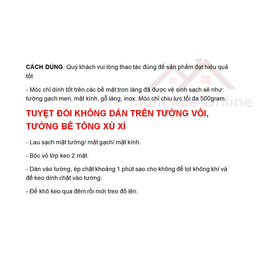 MÓC DÁN TƯỜNG CHỊU LỰC ĐA NĂNGThông tin về sản phẩm dưới đây thuộc sở hữu của shop Mom Mie Online, mô tả đúng theo chất lượng sản phẩm của shop. Vui lòng không sao chép.