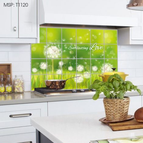khá rộng, phủ hết bề mặt tường bếp.