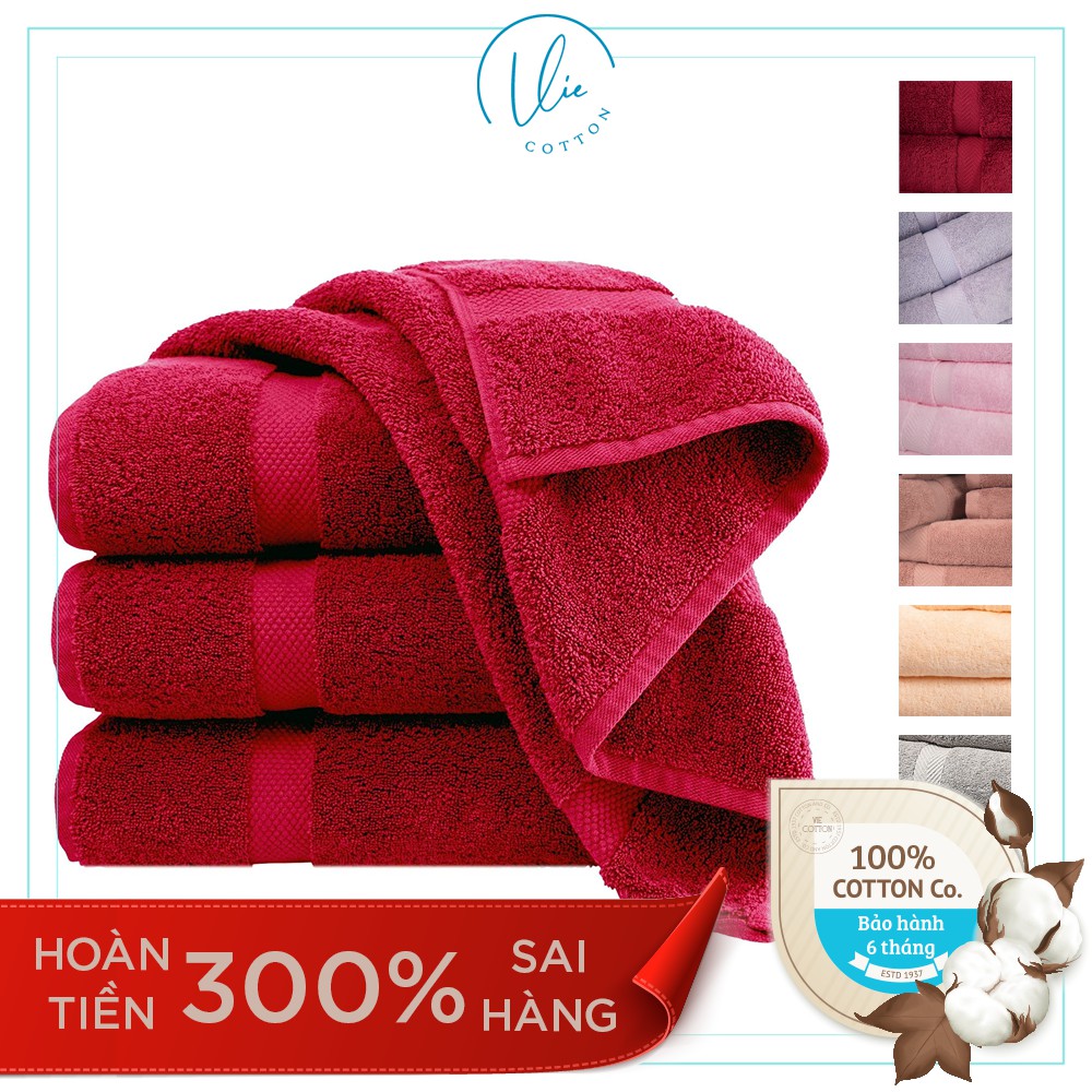 Khăn tắm VIE sử dụng chất liệu sợi bông cao cấp mềm mại, siêu thấm hút, kháng khuẩn cực tốt, an toàn tuyệt đối cho da.- Anh chị nhớ áp mã khuyễn mãi 30k của shop vào mỗi khi thanh toán khi ấn follow shop nhé
