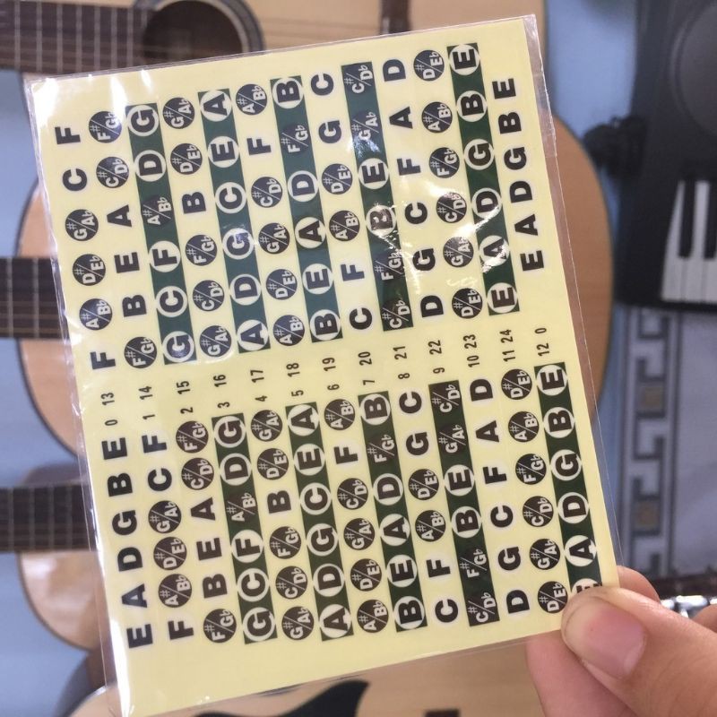 Chức năng: dán lên cần đàn, dế dàng việc học thuộc nốt nhạc