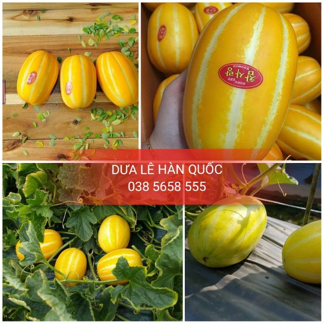 - Thời gian thu hoạch: 70 ngày - Trọng lượng quả: 0.5 - 1.2kg - Khoảng cách trồng: 60 x 90cm - Thời vụ: trồng quanh năm. - Nhiệt độ phát triển: 16 - 29 độ C - Có khả năng chịu nhiệt, chịu hạn tốt. - Xuất xứ: china - Đặc điểm: dưa lê Hàn Quốc chín sớm, năng suất cao kháng bệnh tốt. Từ 26 - 28 ngày cho ra hoa. Quả hình bầu dục màu vàng, có vị ngọt tự nhiên, giòn chắc, hạt nhỏ lép màu trắng ăn rất thơm. *** Cách trồng: 1. Gieo hạt: - Ngâm hạt vào nước ấm tay 2 - 3h. Sau đó đem ra chậu ươm để ươm hạt. Khi cây có từ 3 lá thật thì chuyển ra vườn trồng cố định. - Khoảng cách trồng cây cách cây 0.5m, hàng cách hàng 1.5m. Trồng hàng đôi. - Khi cây được 5 lá thì bạn hãy bắt đầu bấm ngọn để cây phân nhánh. khi nhánh cấp 1 được 5 - 6 lá thì bấm ngọn để cho 5 nhánh cấp 2 phát triển, khi nhánh thứ 2 được 5 - 6 lá thì bấm ngọn để 5 nhánh cấp 3 phát triển. 2. Chăm sóc: - Trong quá trình chăm sóc bạn nên che quả dưa tránh ánh nắng trực tiếp làm mất màu tự nhiên của quả dưa. - Khi vỏ quả chuyển sang màu vàng đậm sáng bóng là lúc quả đạt chất lượng cao nhất, khi đó tiến hành thu hoạch.#hatgiong