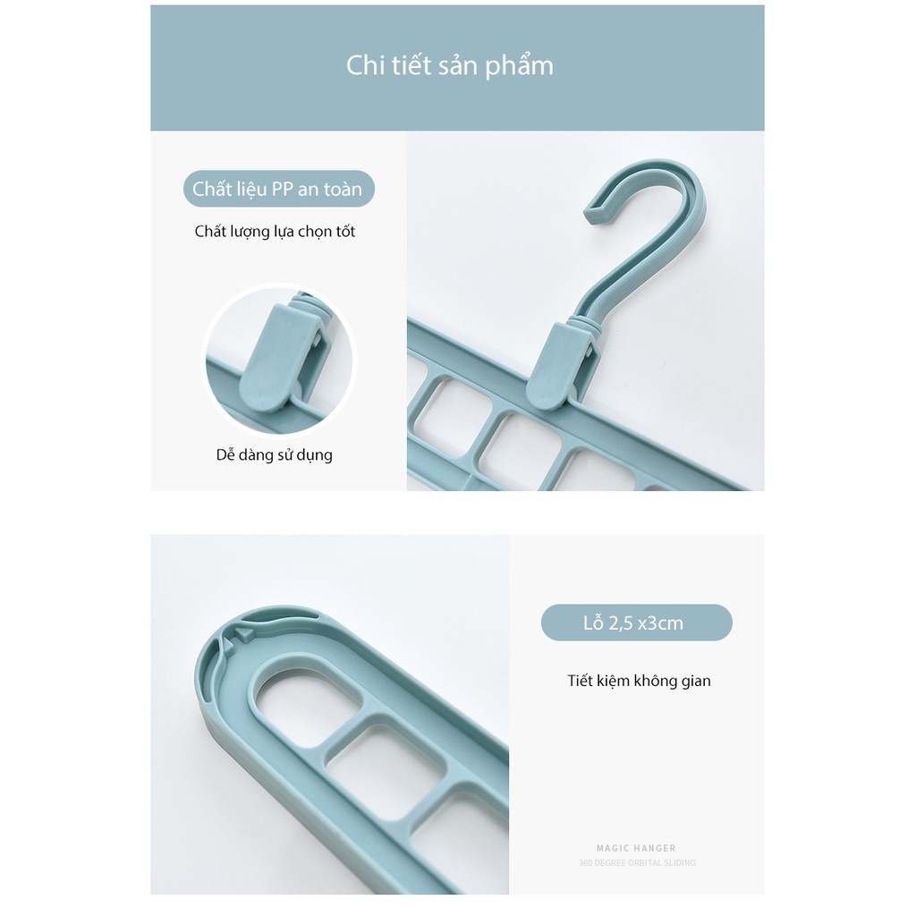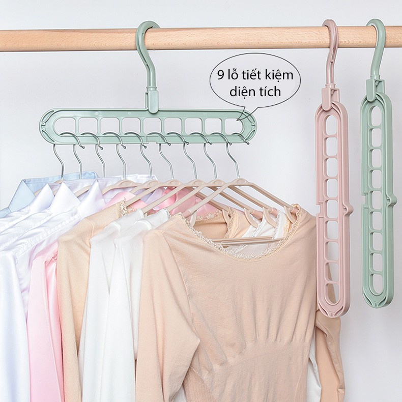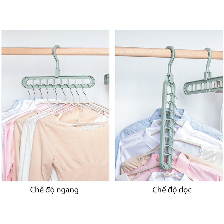 ✅Móc treo quần áo đa năng tiện ích tiết kiệm diện tích (9 lỗ) thiết kế thông minh, tiện lợi treo được 9 móc trên 1 dàn. Treo được nhiều quần áo. Treo ngang treo dọc chỉ cần 1 động tác nhỏ. Chất liệu Nhựa ABS cứng, chịu lực cao. an toàn cho sức khỏe.