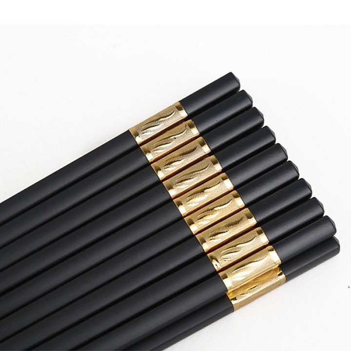 (Hàng cao cấp)Bộ 10 Đôi Đũa Mạ Vàng, Đũa Hợp Kim Chống Mốc Hàn Quốc