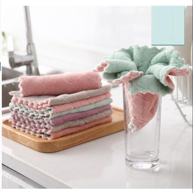 - Khăn lau tay 2 mặt siêu thấm với chất liệu lông mềm mại và khả năng thấm hút tốt, dễ dàng lau sạch chén bát cũng như vệ sinh nhà cửa.- Kích thước: 26 x 15cm.
