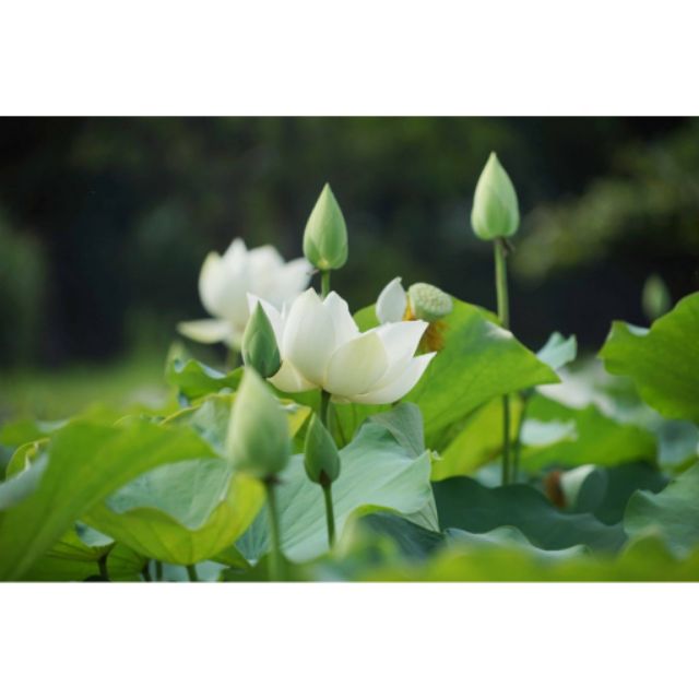 Cây hoa sen trắng cũng tương tự như hoa sen hồng nhưng lại có nét thuần khiết hơn. Những cánh sen trắng muốt vươn lên trong bùn đất khiến chúng ta không thể ngừng ngắm nhìn.
