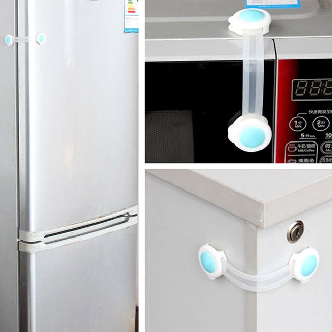 - Khóa tủ an toàn cho trẻ em có tác dụng giữ chặt các loại cửa trong gia đình bạn như cửa tủ, cửa phòng… tránh kẹp tay gây thương tích cho các bé.- Khóa được làm từ chất liệu nhựa cứng cao cấp, rất bền và chắc chắn.