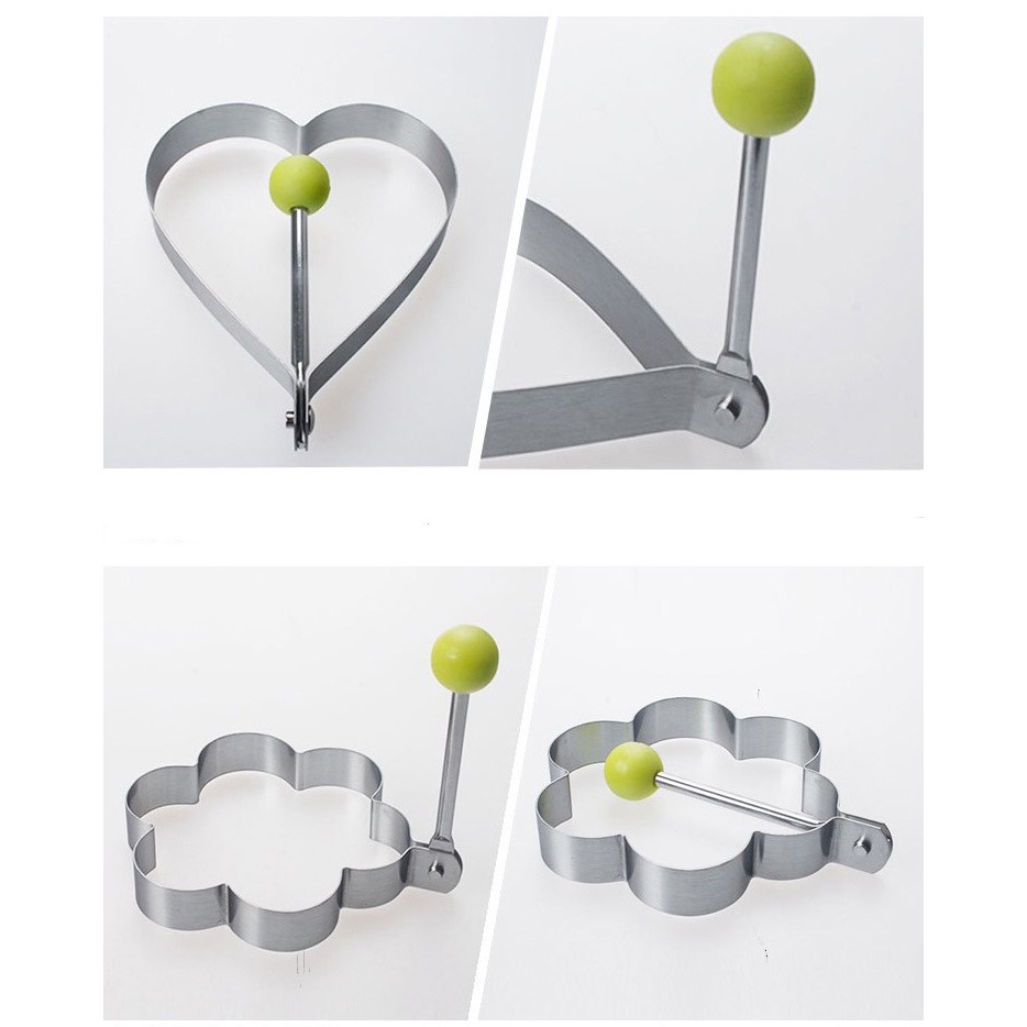 Khuôn Tạo Hình Chiên/Rán Trứng, Bánh Bền ĐẹpVới bộ khuôn chiên trứng, món bánh và trứng ốp của bạn sẽ tuyệt đẹp. Có hình trái tim, hình tròn, hình bông hoa, hình ngôi sao. Sử dụng rất đơn giản, bạn chỉ cần cho khuôn tạo hình lên chảo, cho dầu vào, rồi đập trứng vô là xong. Cùng 1 chiếc chảo, bạn có thể ốp được 4-5 quả trứng cùng lúc. Thật tiện lợi phải không nào!