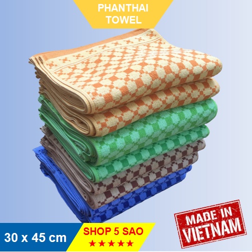 Khăn rửa mặt bông họa tiết ô vuông 30x45cm (63g) Sợi cotton #khanmat #khanbong