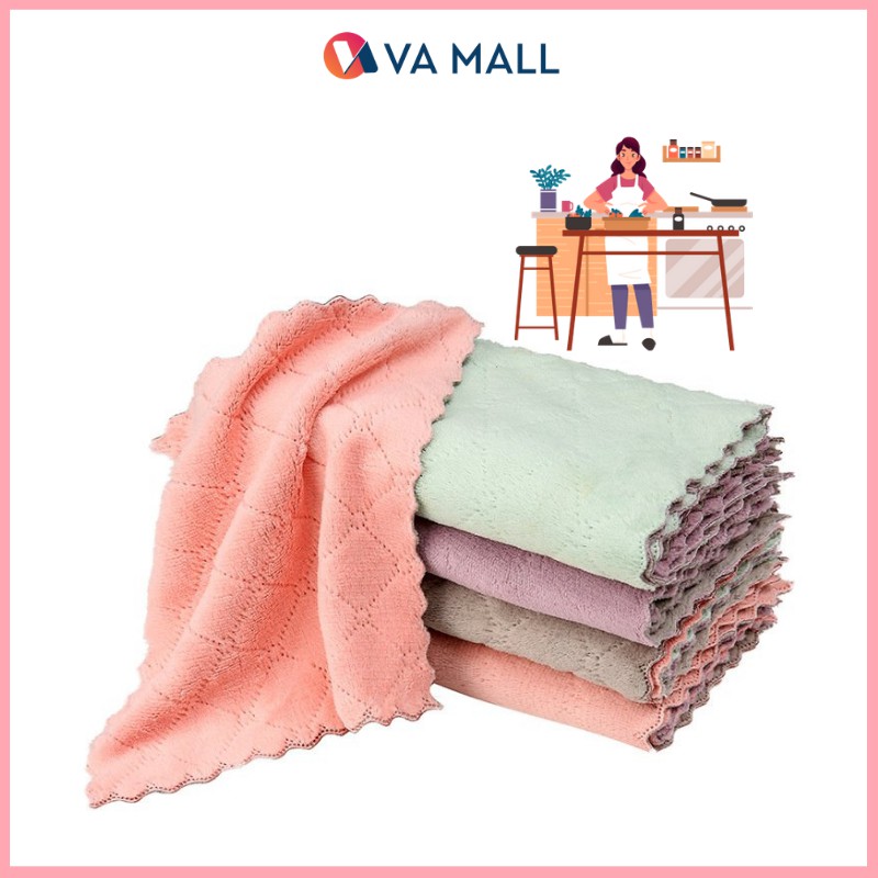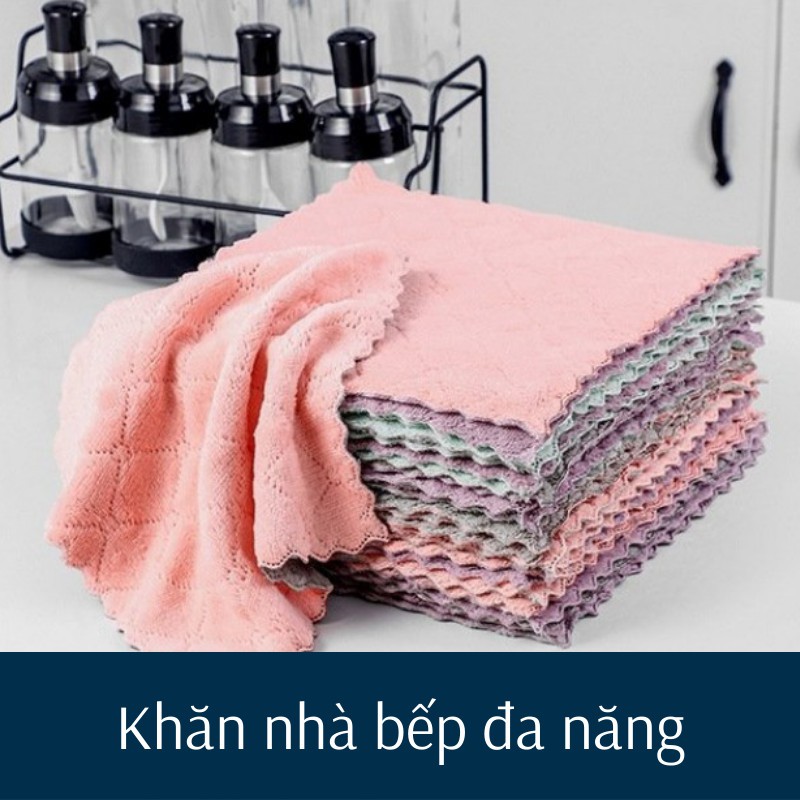 Set 5 Khăn lau nhà bếp đa năng hai mặt siêu thấm nước 14 cm * 25 cm