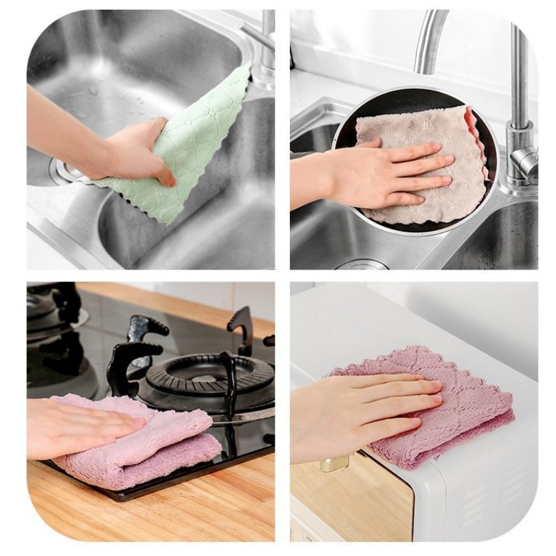 Nhà cửa & Đời sống > Dụng cụ chăm sóc nhà cửa > Khăn vệ sinh || [Mã LIFE1003ALL giảm 10% đơn 50K] Set 5 Khăn lau nhà bếp đa năng hai mặt siêu thấm nước 14 cm * 25 cmCòn hàng