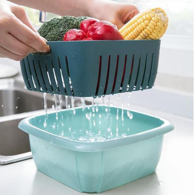 Bộ rổ nhựa kèm chậu có nắp đậy🎀🎀 Rổ nhựa kèm chậu 2 trong 1