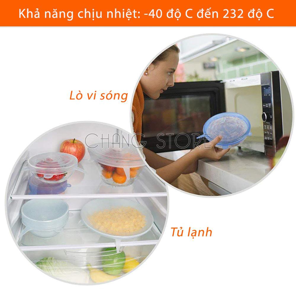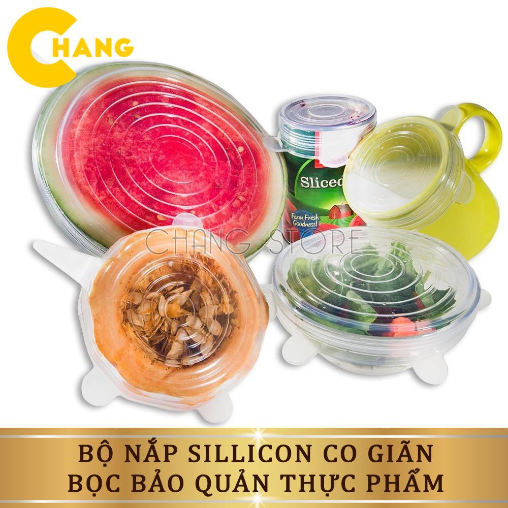 Bộ 6 Nắp Đậy Silicon Thay Thế Màng Bọc Thực Phẩm Bảo Vệ Môi Trường