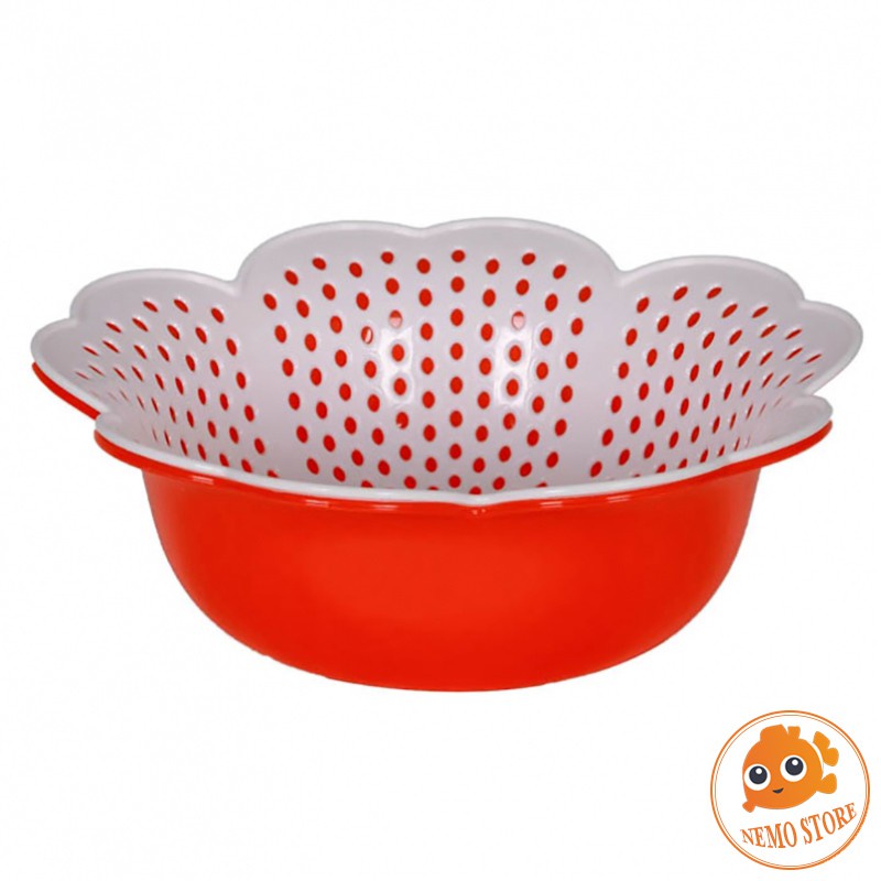 Rổ nhựa 2 lớp đựng hoa quả, đựng đồ đa năng 2in1 hoa mai