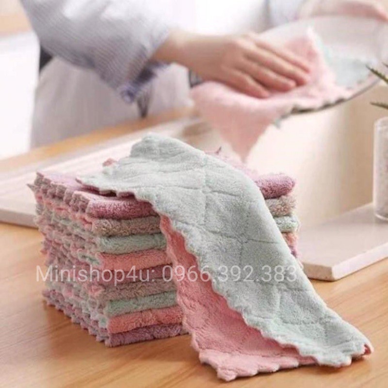 Thông tin chi tiết sản phẩm Khăn lau bếp đa năng 2 mặt mềm mại thấm hút tốt, khăn lau bếp đa năng chống dính dầu mỡ nhanh khô: