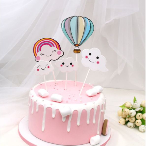 Trang trí bánh sinh nhật, bánh kem cho bé trai bé gái - SET THẺ CẮM KHÍ CẦU MÂY