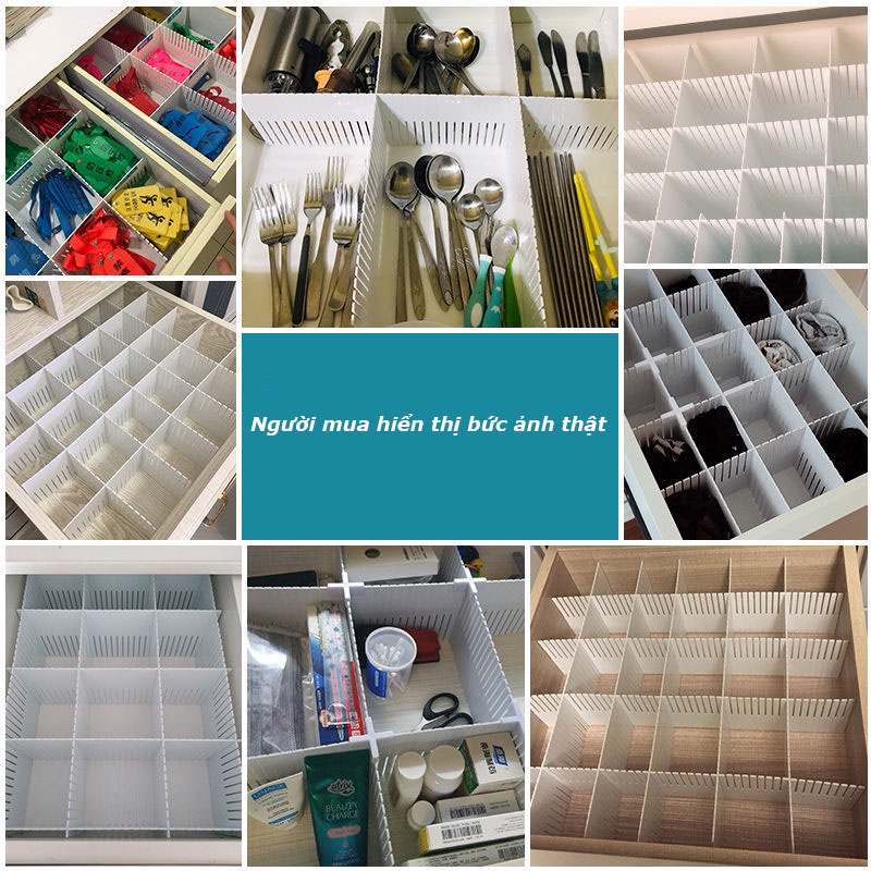 - Gồm 4 thanh chắn hình chữ nhật, được đặt trong các hộc bàn, kệ tủ... để phân chia thành nhiều ô nhỏ cho bạn tùy ý sắp xếp, phân loại đồ đạc theo sở thích