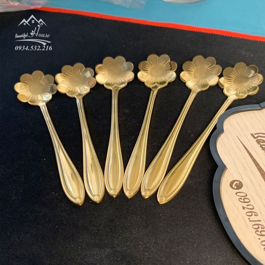 [Mã LIFE20KALL giảm 10% đơn 50K] Thìa Cà Phê [INOX] Mạ Vàng Hình Hoa - Thìa Cà Phê Pha Trà, Cà Phê, Ăn Bánh