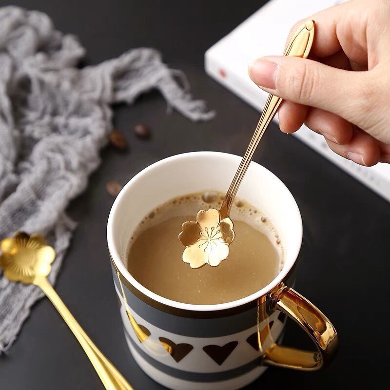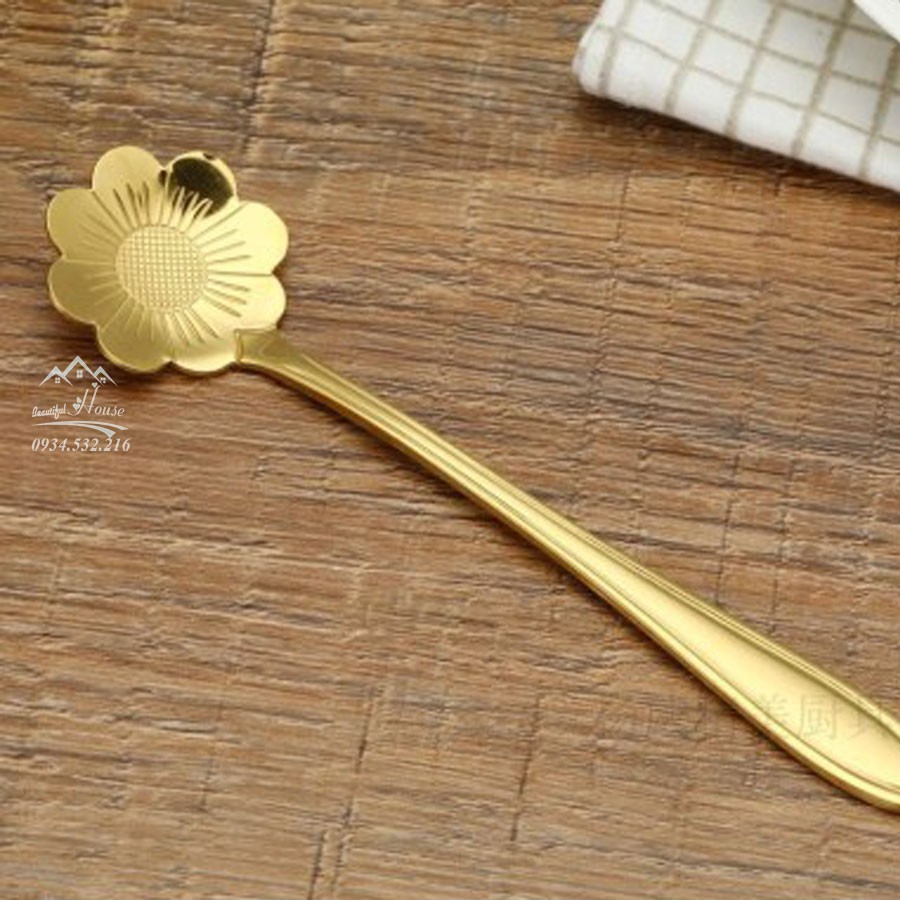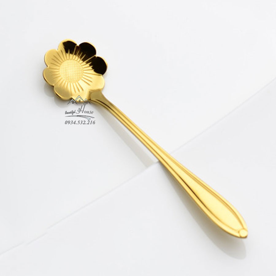Thìa Cà Phê [INOX] Mạ Vàng Hình Hoa - Thìa Cà Phê Pha Trà, Cà Phê, Ăn Bánh* Thìa cà phê ăn kem mật ong bằng inox hình dạng bông hoa