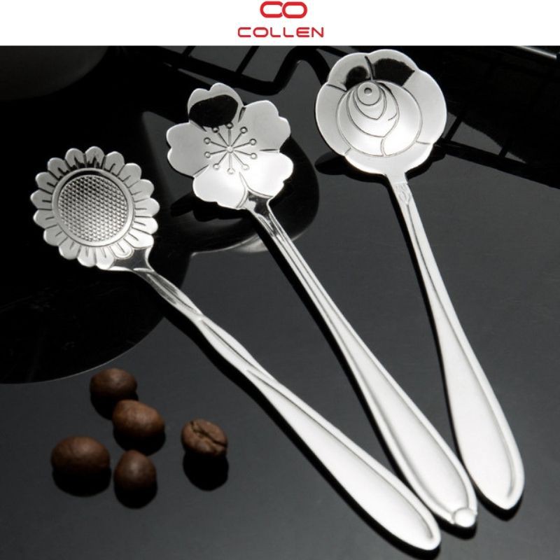 - Thìa cà phê ăn bánh kem, mật ong bằng inox hình dạng bông hoa