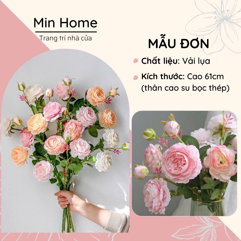 Hoa Hồng Mẫu Đơn - Hoa Trà Hoa Lụa Trang Trí Cao Cấp Cho Nhà Cửa.