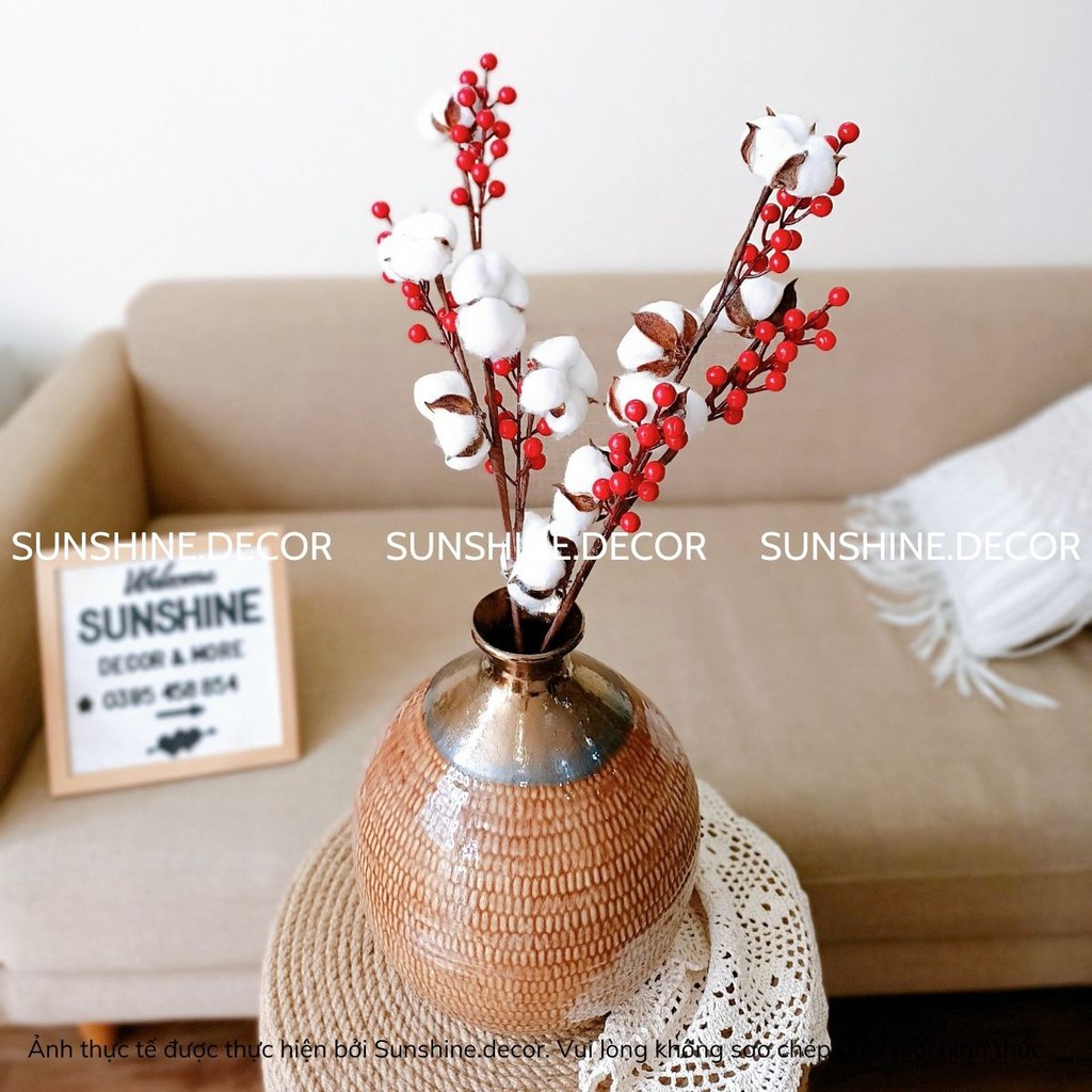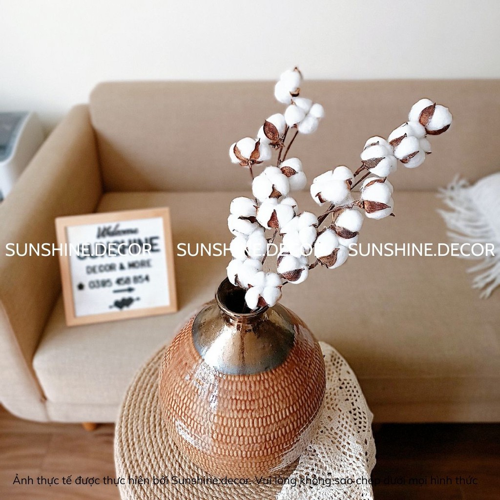 Cành Hoa Bông Gòn Khô Cotton Flower Đào Đông Trang Trí Chụp Ảnh - Thân Sắt - 10 BôngBông gòn khô