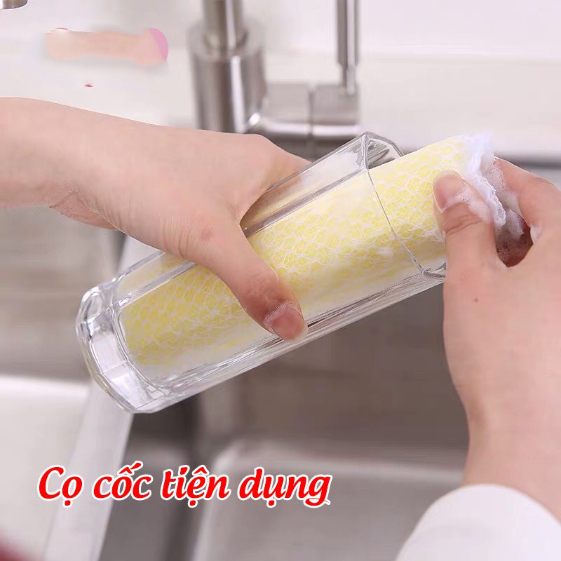 -Thiết kế phần eo thon, giúp cầm chắc khi thao tác chùi rửa. Mút mềm, bảo vệ chén bát, nồi chảo, không gây trầy xước bề mặt vật dụng.