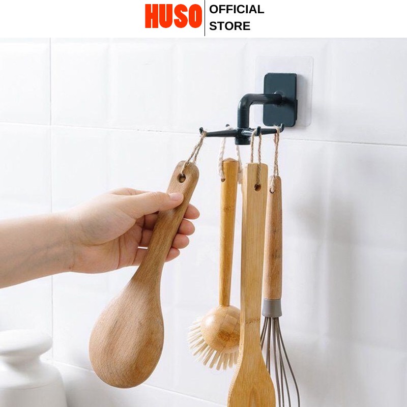 Giá Tròn Treo Đồ Nhà Bếp - Dán Tường 6 Móc Xoay 360 Độ Treo Đồ Đa Năng - HUSO