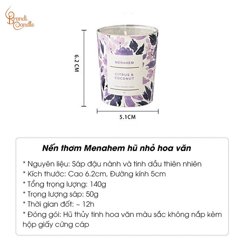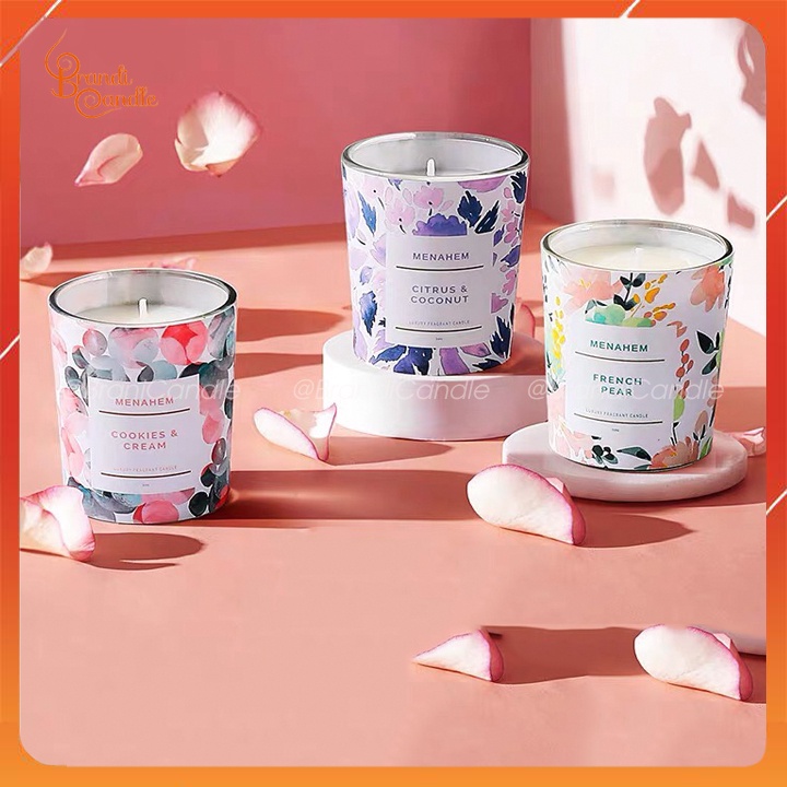 Giới thiệu Nến thơm menahem sáp đậu nành hũ hoa văn sắc màu