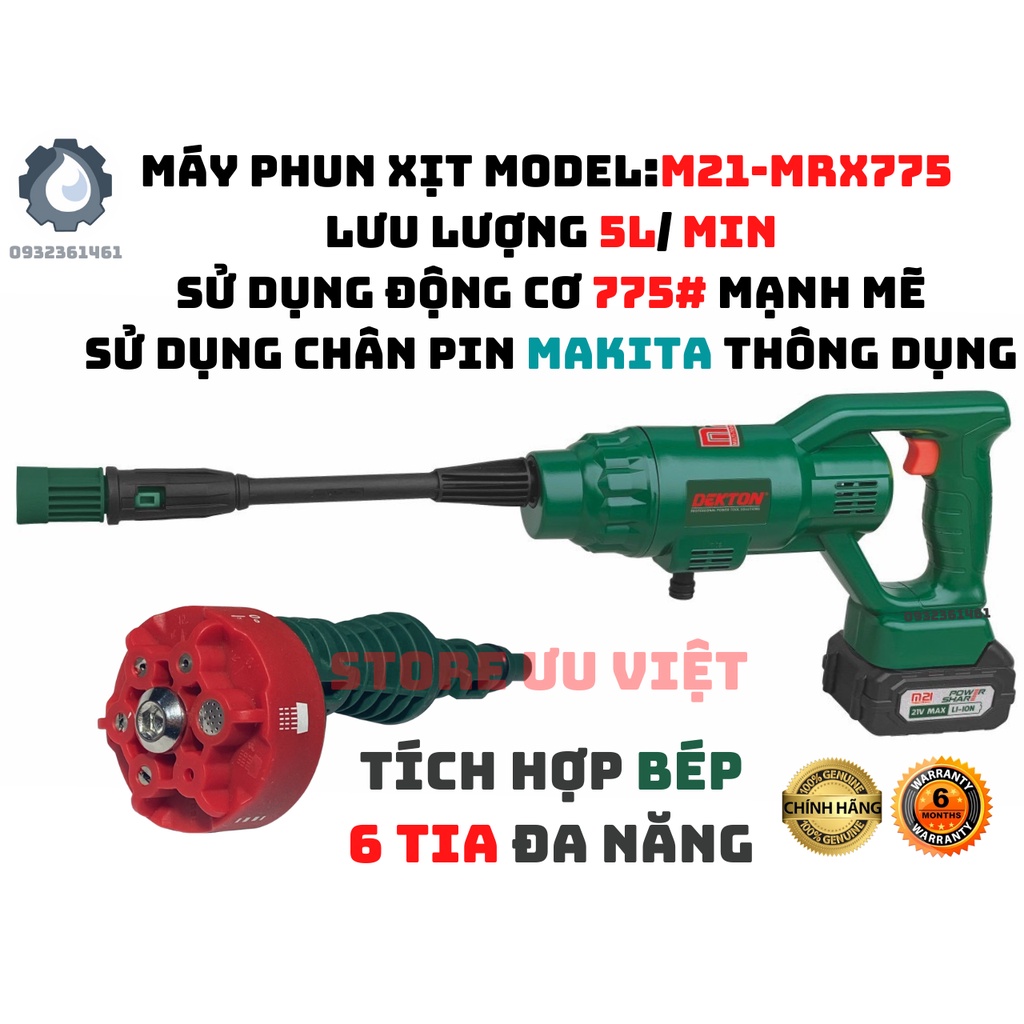 MÁY PHUN XỊT RỬA DEKTON MODEL M21 SRX775 CHÂN PIN THÔNG DỤNG GIÁ TỐT