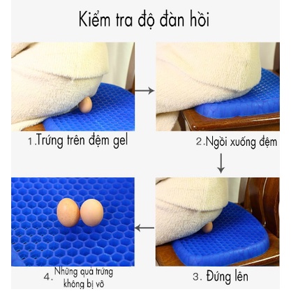 - Thiết kế tổ ong thoát khí trong toàn bộ đệm, giữ mát, ngăn ngừa mồ hôi Chống thâm mông do mồ hôi - Chống mụn nhọt và chống bệnh trĩ do phải ngồi nhiều.