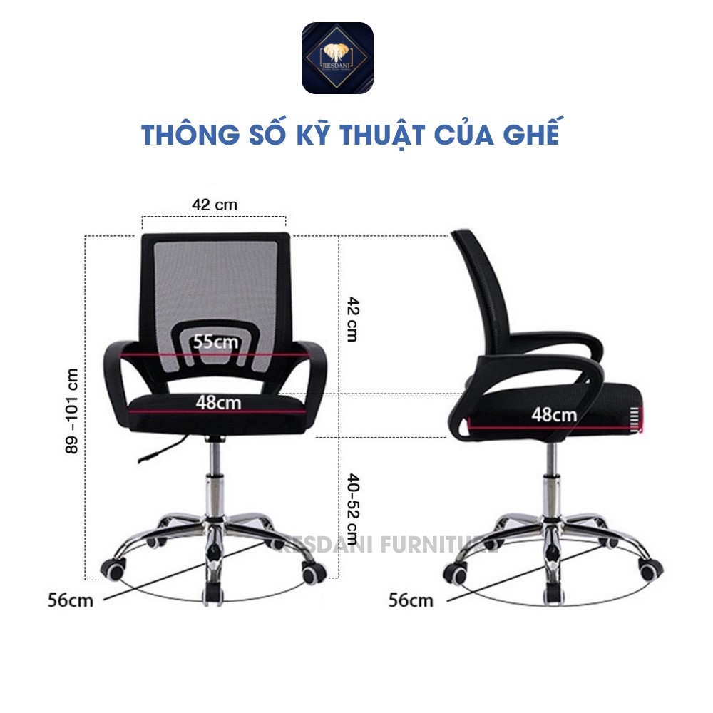 - Chất liệu:Chân kim loại và khung ghế nhựa ABS, vải lưới siêu thoáng khí