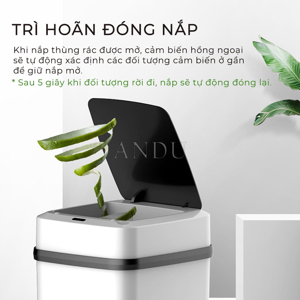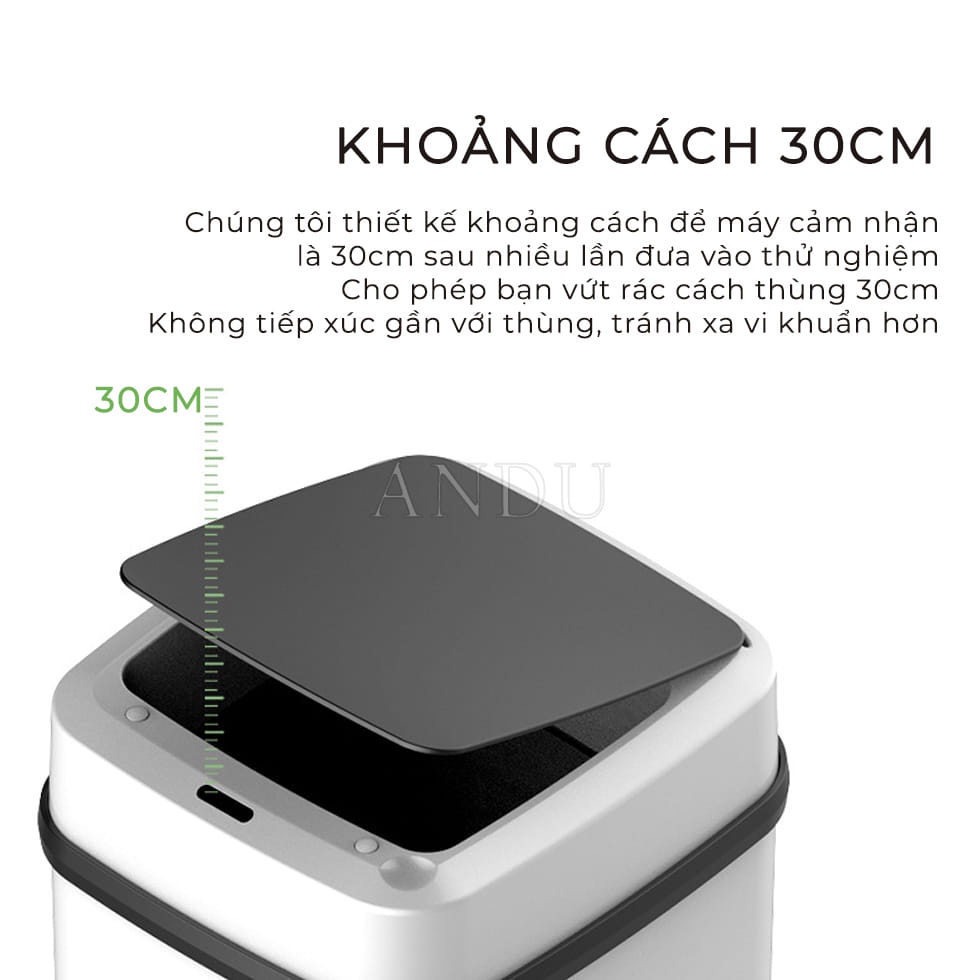 -Thiết kế cảm ứng, Sau khi bật công tắc máy sẽ tự cám biển khi khua tay hoặc gõ vào thân thùng rác, hạn chế các vi khuẩn có hại gây bệnh