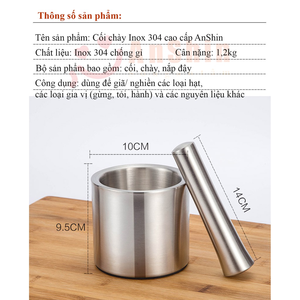 Nhà cửa & Đời sống > Dụng cụ nhà bếp > Khác || [Mã LIFE1003NW giảm 10% đơn 200K] Cối chày Inox 304 cao cấp AnShinCòn hàng