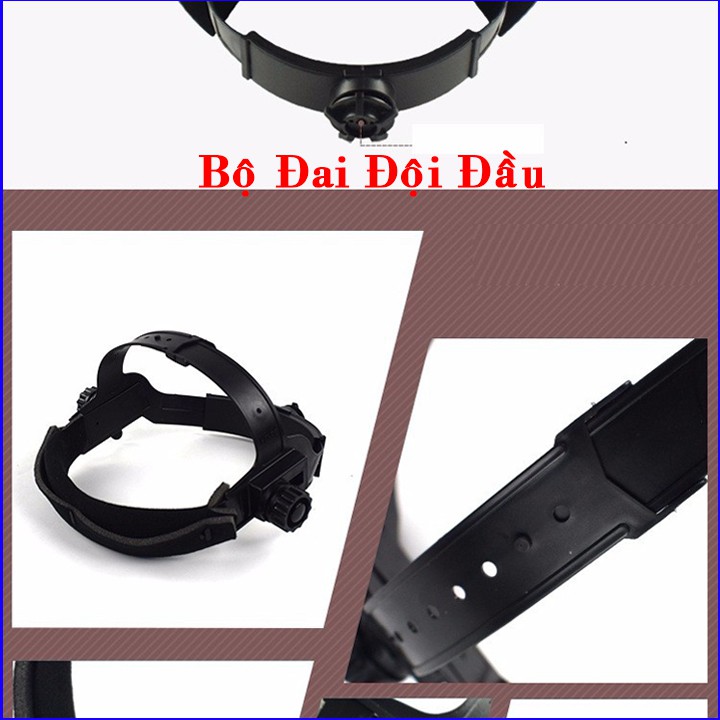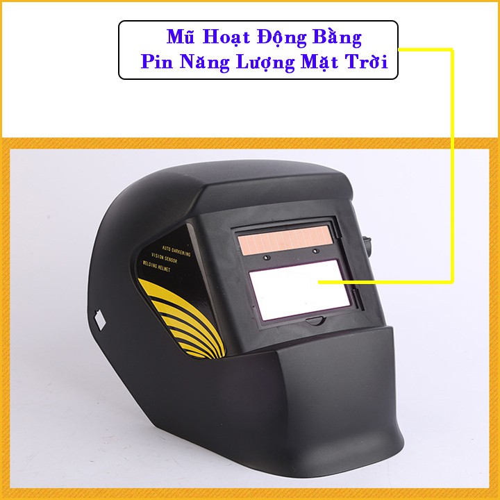 - Mũ hàn có mắt kính tự động điều chỉnh thang số lọc sáng.