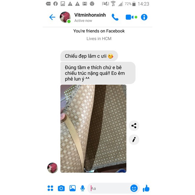 ✖Chiếu gồm 2 lớp lớp sợi mây tổng hợp ở phía trên và lớp vải ở phía dưới, trên cả 2 lớp là những lỗ thoát khí nhỏ tạo ra sự lưu thông không khí và điều hòa nhiệt độ, giúp chiếu không bị bí.