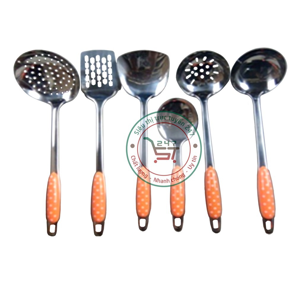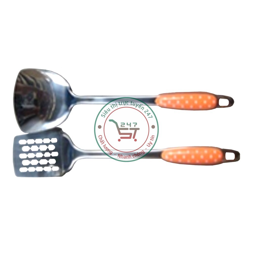 Nhà cửa & Đời sống > Bộ đồ bàn ăn > Bộ dao kéo || [Mã LIFE1404ALL giảm 10% đơn 50K] Muôi inox - Xẻng nấu ăn inox cán bọc nhựa cam cách nhiệt bền đẹp sáng bóngCòn hàng