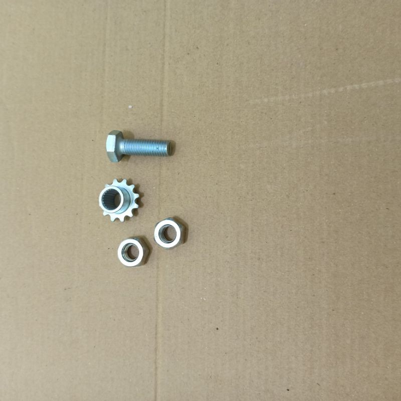 + Ốc hàn vào máy và thả nhông vào sau đó khóa 2 ê cu vào là xong )