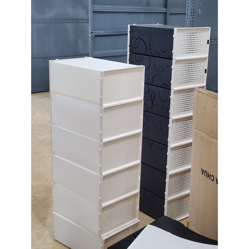 - Hộp đựng giày nhựa cứng cáp và chịu lực cao Thiết kế hộp vuông rất đẹp -chịu được tải trọng 60kg cửa mở được làm từ PS kính trong suốt như thủy tinh có thể nhìn thấy những đôi giày bên trong