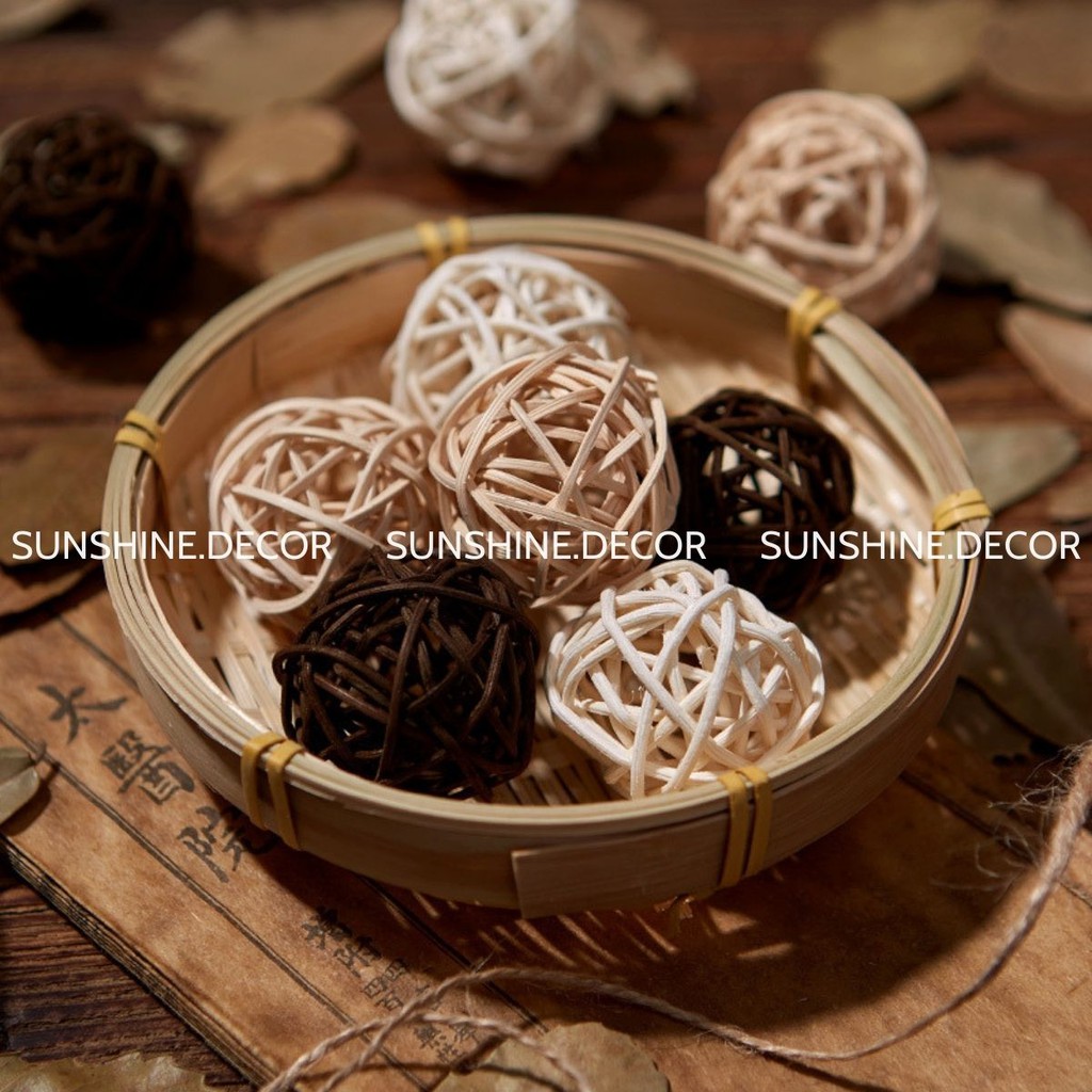 3 Quả Cầu Mây Phụ Kiện Chụp Ảnh Sản Phẩm Trang TríCầu mây trang trí