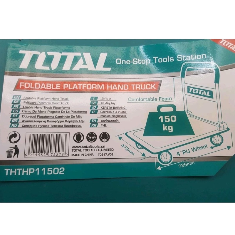 - Xe đẩy hàng có thể gập Total THTHP11502 là một dụng cụ hỗ trợ có thể dễ dàng được tìm thấy tại nhiều siêu thị, nhà kho, bến bãi,… lớn tại Việt Nam. Thương hiệu Total đến từ Trung Quốc là một trong những đơn vị chuyên sản xuất các công cụ, thiết bị dân dụng và công nghiệp nổi tiếng về chất lượng, độ tiện lợi khi sử dụng cũng như mức giá rất cạnh tranh.