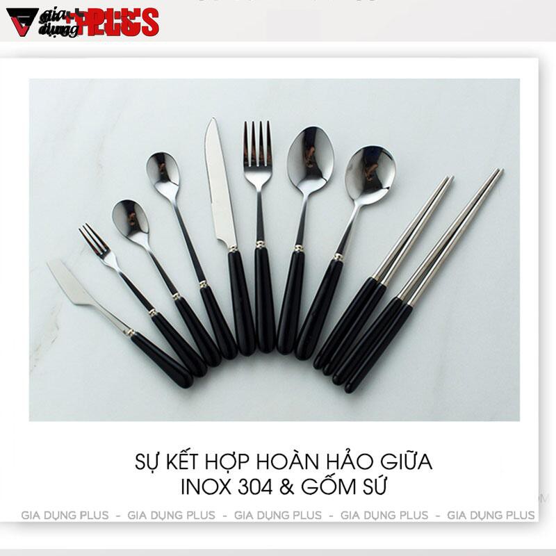 Nhà cửa & Đời sống > Bộ đồ bàn ăn > Bộ dao kéo || [Mã LIFE1703ALL giảm 10% đơn 50K] Đũa, thìa, dao, nĩa inox 304 tay cầm sứ màu đen cao cấp VimoraCòn hàng
