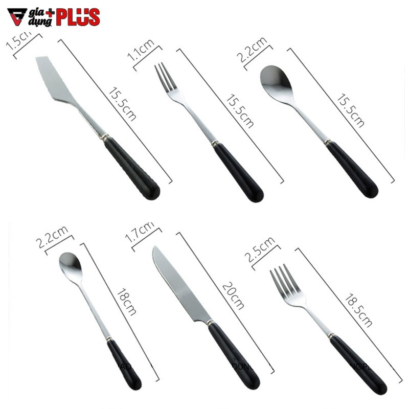 👉 Tay cầm bằng gốm sứ (mịn, đẹp, sang trọng) kết hợp với thép không gỉ (inox 304) cao cấp mang lại sự đẳng cấp cho bộ đồ ăn nhà bạn.👉 Bộ đồ ăn sứ màu đen gồm: đũa, dao bít tết, thìa lớn, thìa nhỏ, nĩa lớn, nĩa nhỏ.