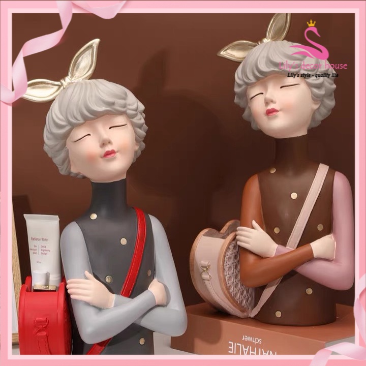 Nhà cửa & Đời sống > Trang trí nhà cửa > Bình trang trí || [Mã LIFE1703ALL giảm 10% đơn 50K] TƯỢNG CÔ GÁI ĐEO BALO CHÉO CẮM HOA ĐỰNG ĐỒ TIỆN DỤNGCòn hàng