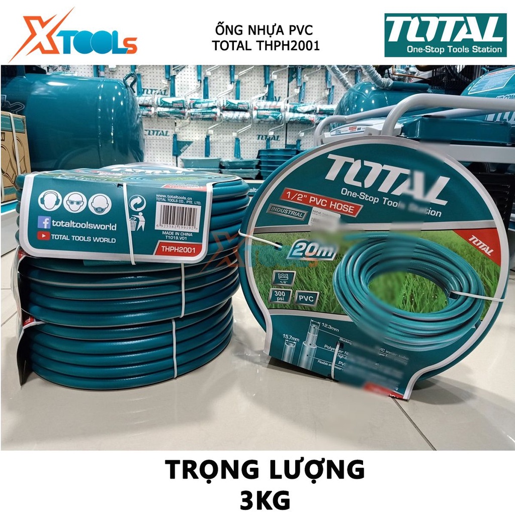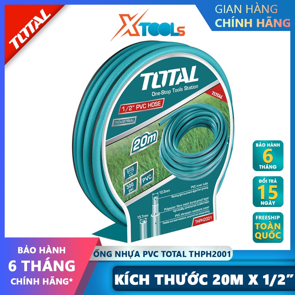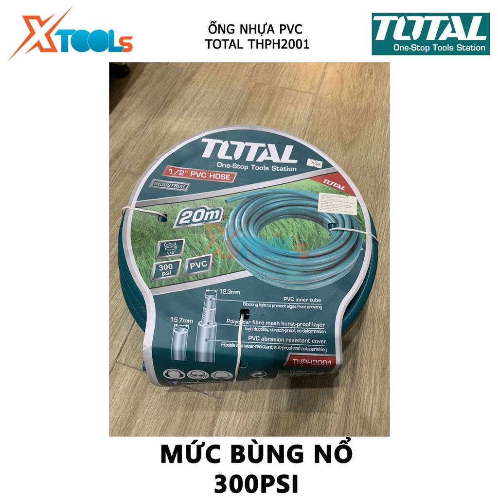 Giới thiệu Ống nước vòi xịt PVC TOTAL THPH2001 dây dẫn nước Kích thước 20M x 1/2", mức Bùng nổ 300psi, lực kéo thử nghiệm 880N chốn