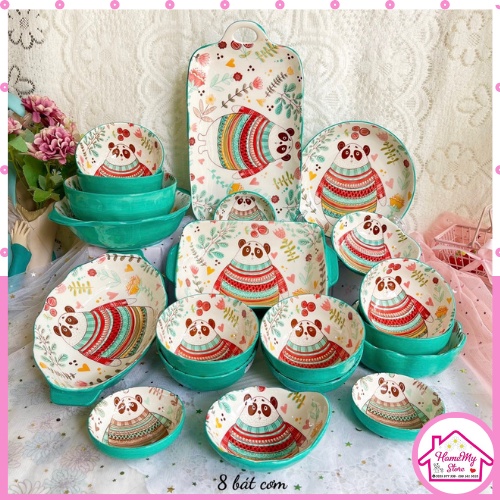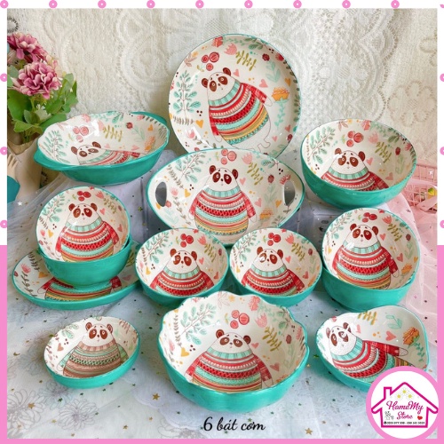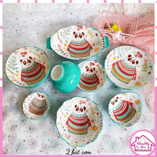 Bát Đĩa Decor bát ăn cơm Tô Sứ Bộ Chén Dĩa Dễ Thương Đẹp Cao Cấp Ăn Dặm Cho Bé hình Gấu Trúc