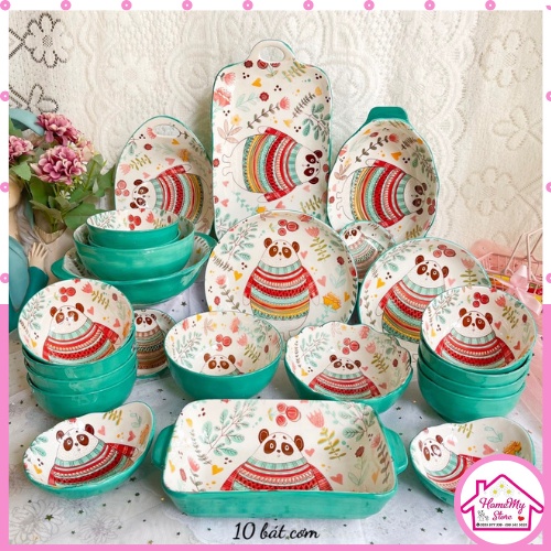 - Set bát đĩa có đầy đủ các món từ bát sứ, tô sứ, đĩa sứ, chảo sứ, bát ăn dặm,... đều đủ cả.