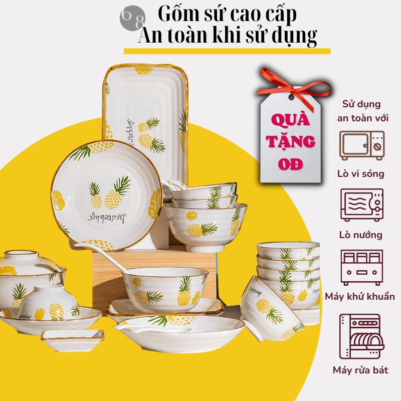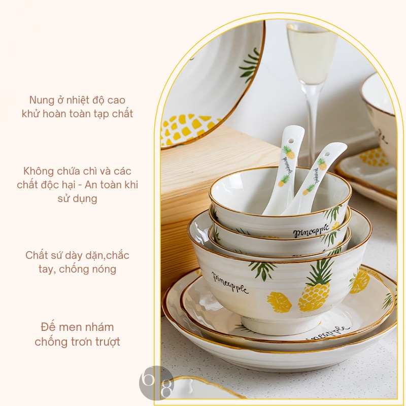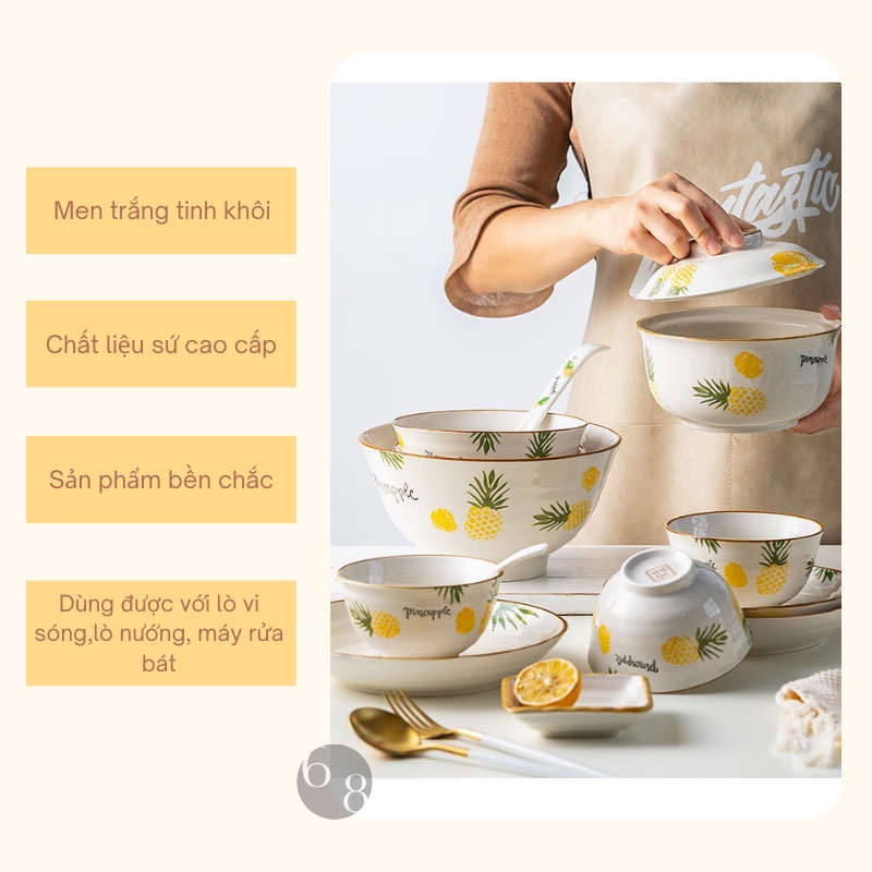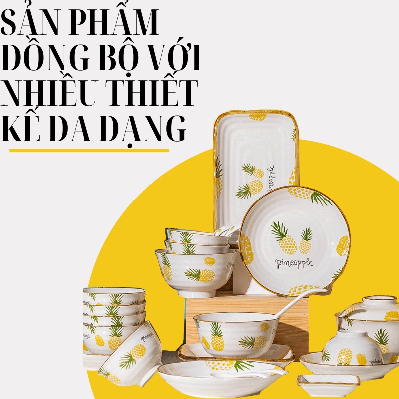 THÔNG TIN SẢN PHẨM:- Bộ bát đĩa ,chén dĩa sứ,bát ăn cơm decor cao cấp họa tiết dứa vàng