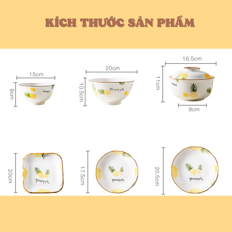 Bộ Bát Đĩa Chén Dĩa Sứ Bát Ăn Cơm Decor gốm sứ cao cấp họa tiết Dứa Vàng