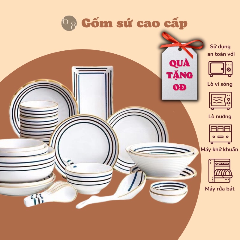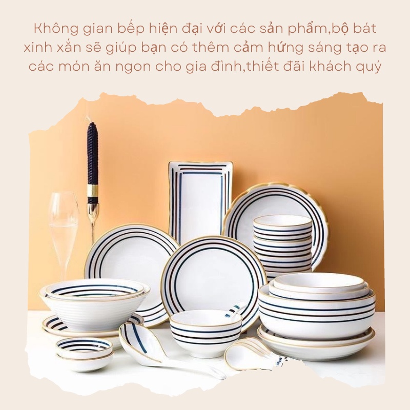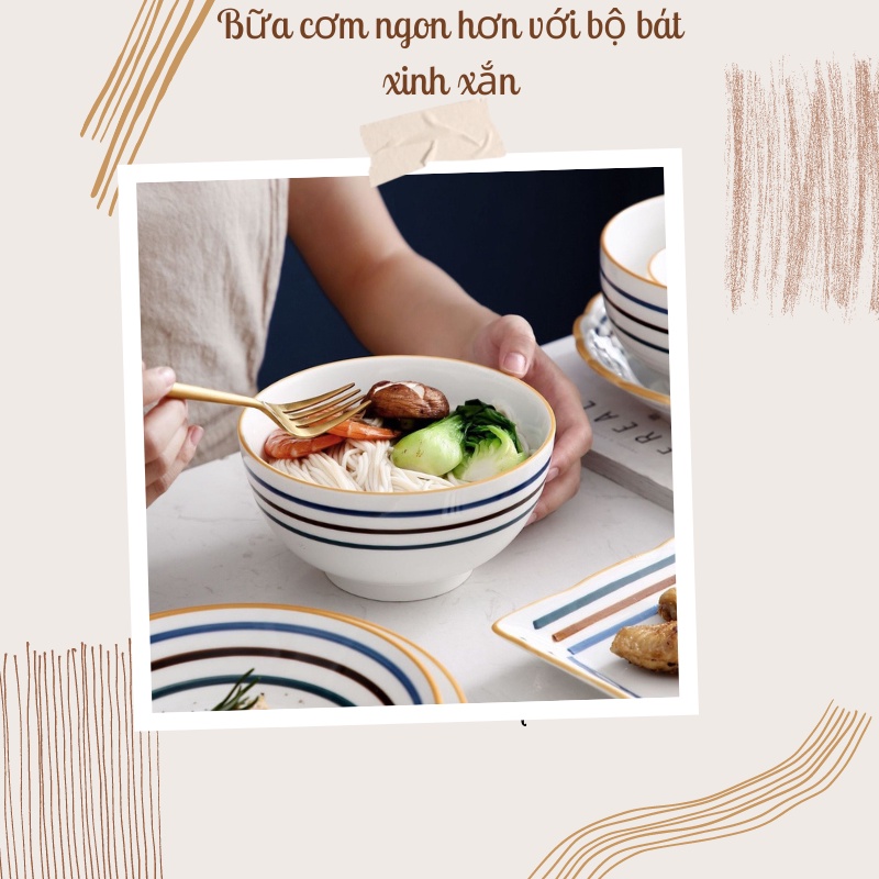 Nhà cửa & Đời sống > Bộ đồ bàn ăn > Tô || [Mã LIFE3103ALL giảm 10% đơn 50K] Bộ bát đĩa Kẻ ,chén dĩa sứ,bát ăn cơm decor cao cấp phong cách Nhật BảnCòn hàng
